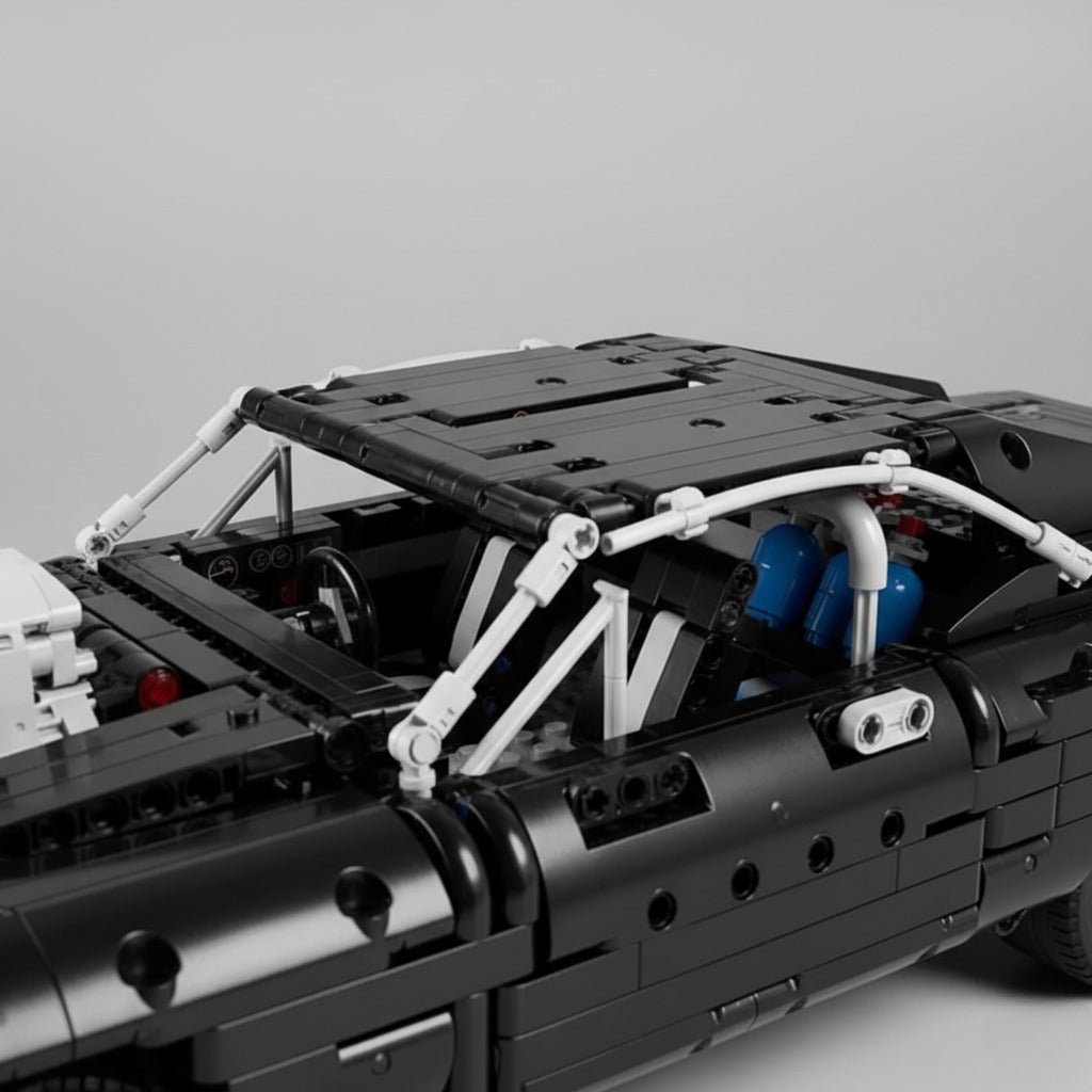 Inspirado diretamente no carro de Dominic Toretto, este modelo é repleto de detalhes autênticos. Recrie o interior com a gaiola de proteção, os tanques de nitro, o volante funcional e as linhas agressivas que fizeram deste Dodge Charger uma lenda.