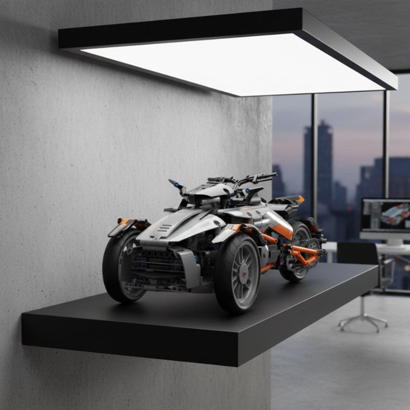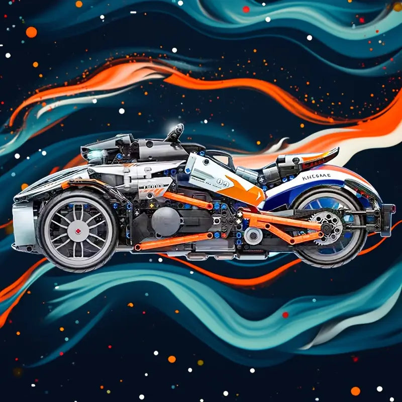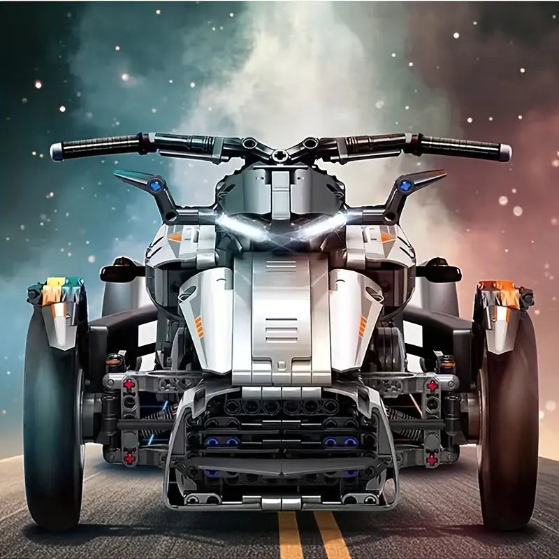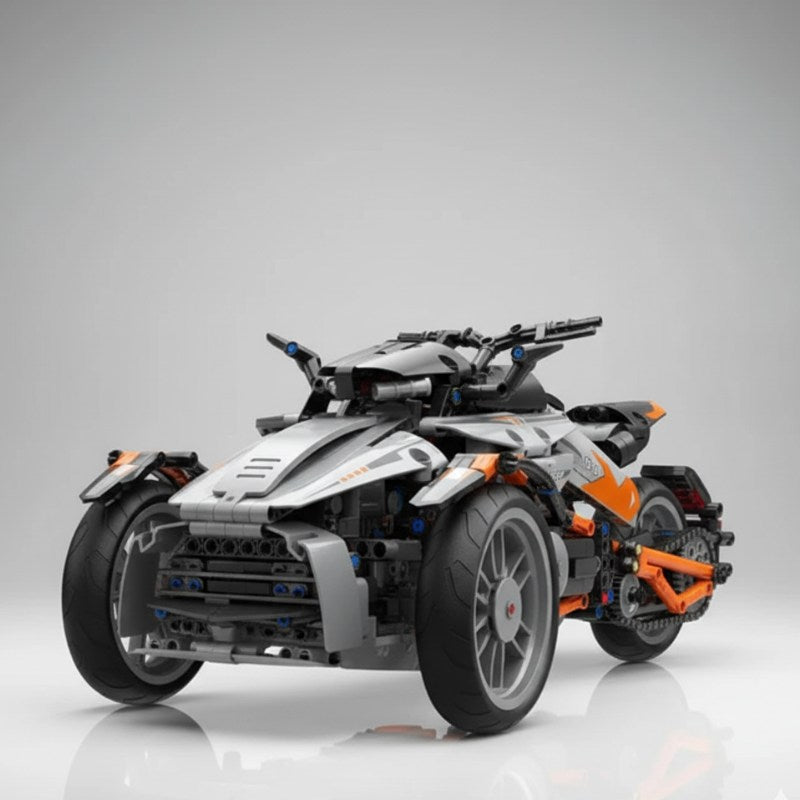 Vá além do convencional e construa um veículo que parece ter saído de um filme de ficção científica. Este modelo celebra a vanguarda do design e da tecnologia, combinando a estabilidade de um carro com a agilidade e a emoção de uma motocicleta. Uma visão do futuro da mobilidade que você pode montar.