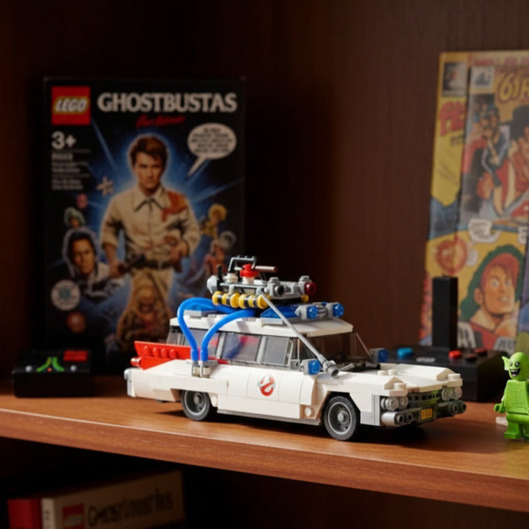 Com 2.352 peças e 47 cm, esta construção é uma imersão total no universo dos Caça-Fantasmas. Desfrute da montagem de cada detalhe, desde o chassi clássico da Cadillac até o complexo arsenal de equipamentos paranormais no teto. Uma experiência cheia de nostalgia e descobertas.