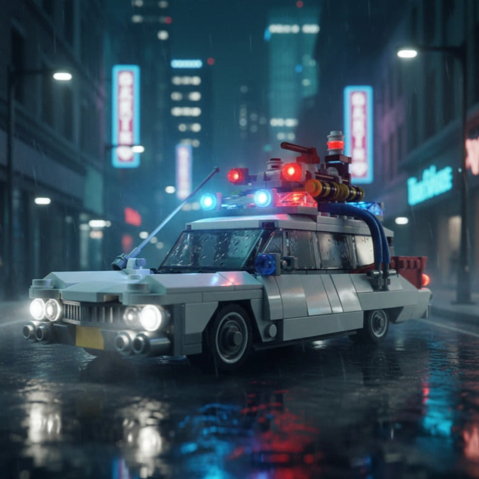 Prepare sua mochila de prótons e atenda ao chamado. Este modelo celebra o veículo mais famoso do combate ao paranormal, a lendária ambulância de 1959 transformada em uma máquina de caçar fantasmas. Uma homenagem à aventura e à comédia que marcaram uma geração.