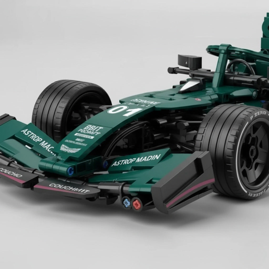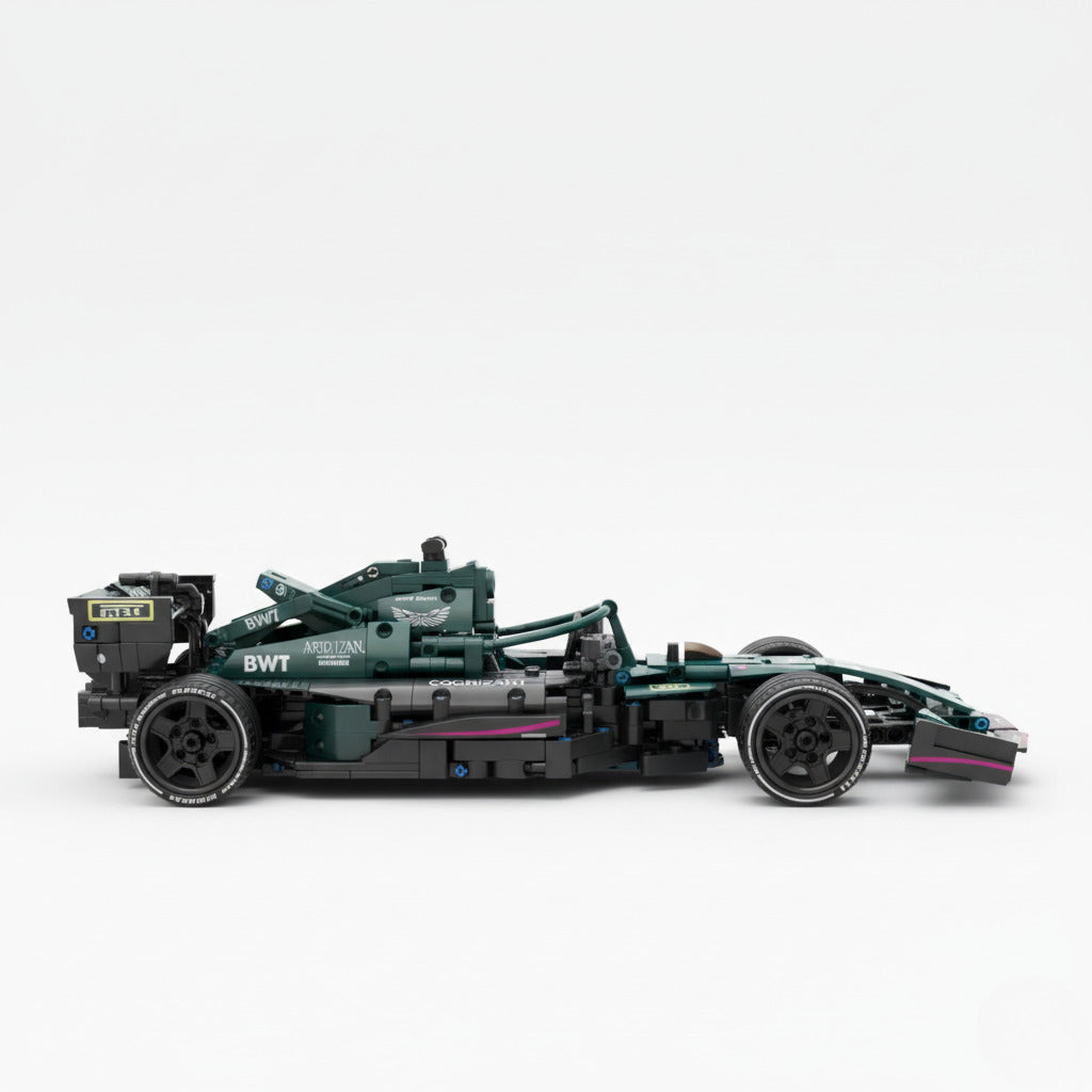 Com 1.089 peças, esta construção é uma experiência focada na beleza do design. Desfrute do prazer de montar as linhas fluidas e a carroceria elegante, vendo o inconfundível verde de corrida tomar forma e criar um dos carros mais bonitos do grid.