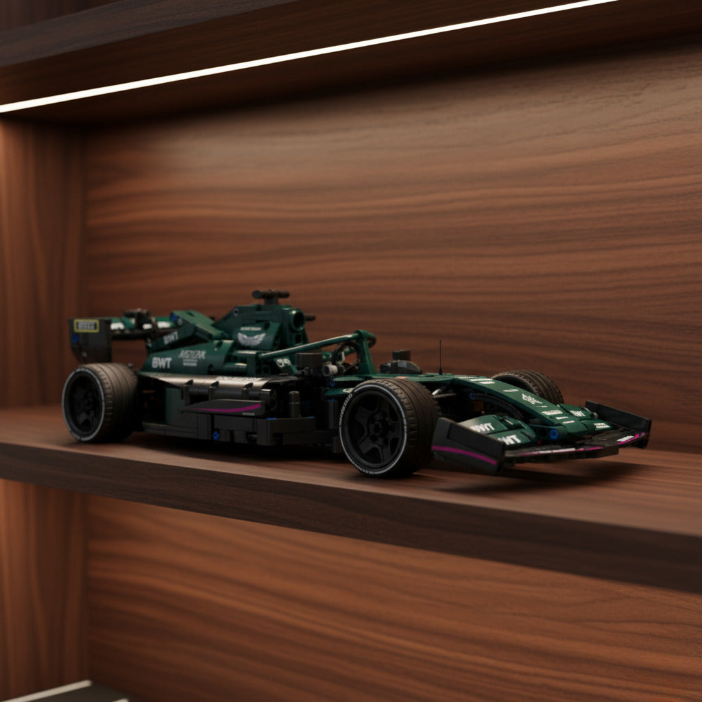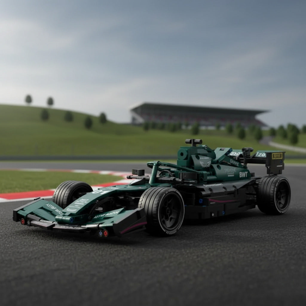 Celebre o retorno de um dos nomes mais prestigiados do mundo ao grid com esta recriação de 1.089 peças e 40 cm. Este modelo captura o charme e a sofisticação que definem a marca, combinando a mais alta tecnologia do automobilismo com um legado de luxo e performance.