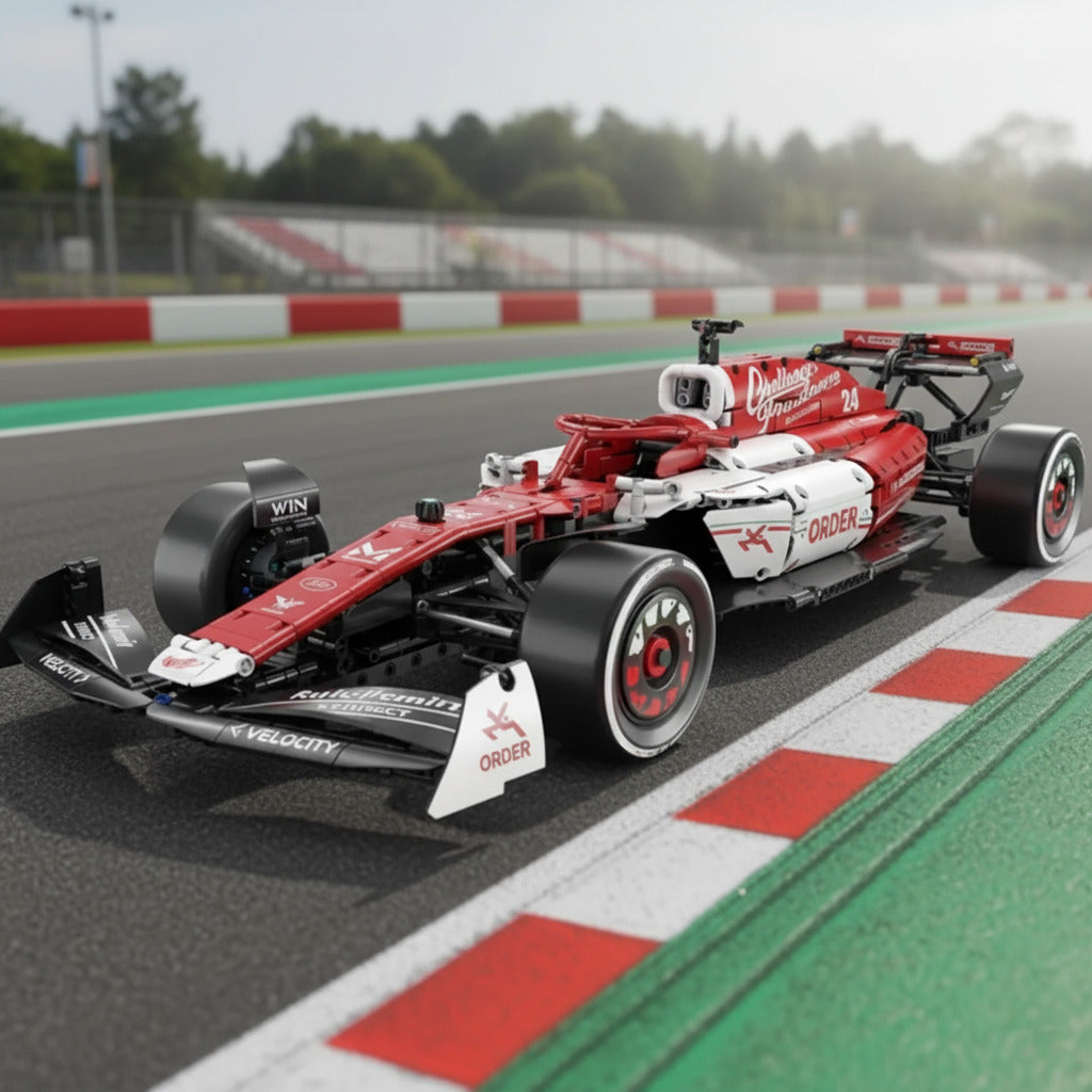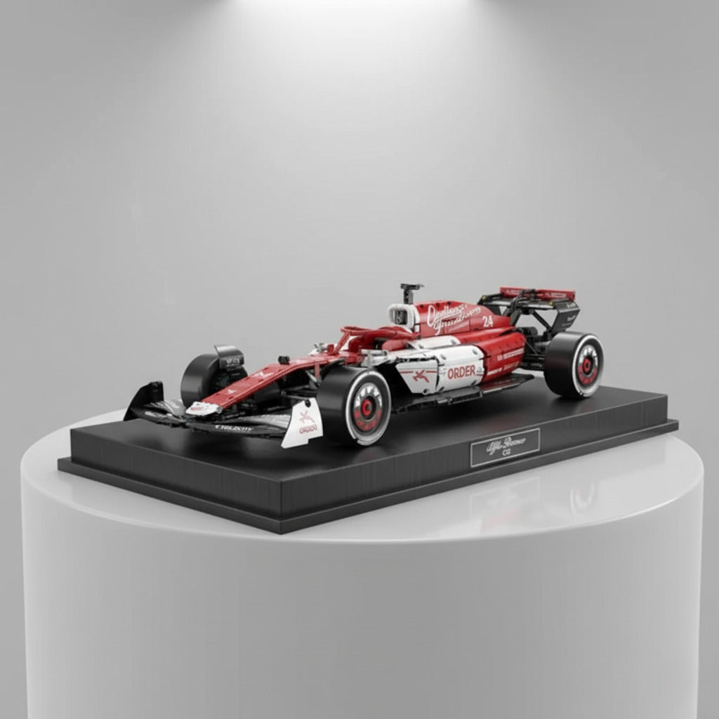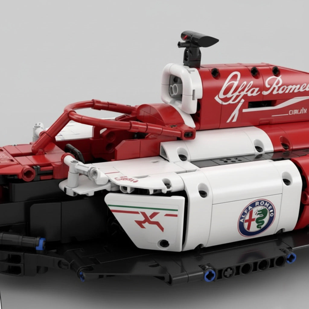 Construa um pedaço da mais rica história do automobilismo. Este modelo celebra o retorno da Alfa Romeo, a marca que venceu o primeiro campeonato mundial da história, à categoria máxima. Uma homenagem à paixão, ao design italiano e a um legado de vitórias.