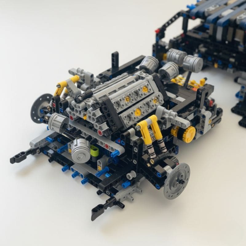 Engenharia Autêntica: Construa e admire o complexo motor W16 com pistões que se movem, além de um câmbio de 8 marchas totalmente funcional.